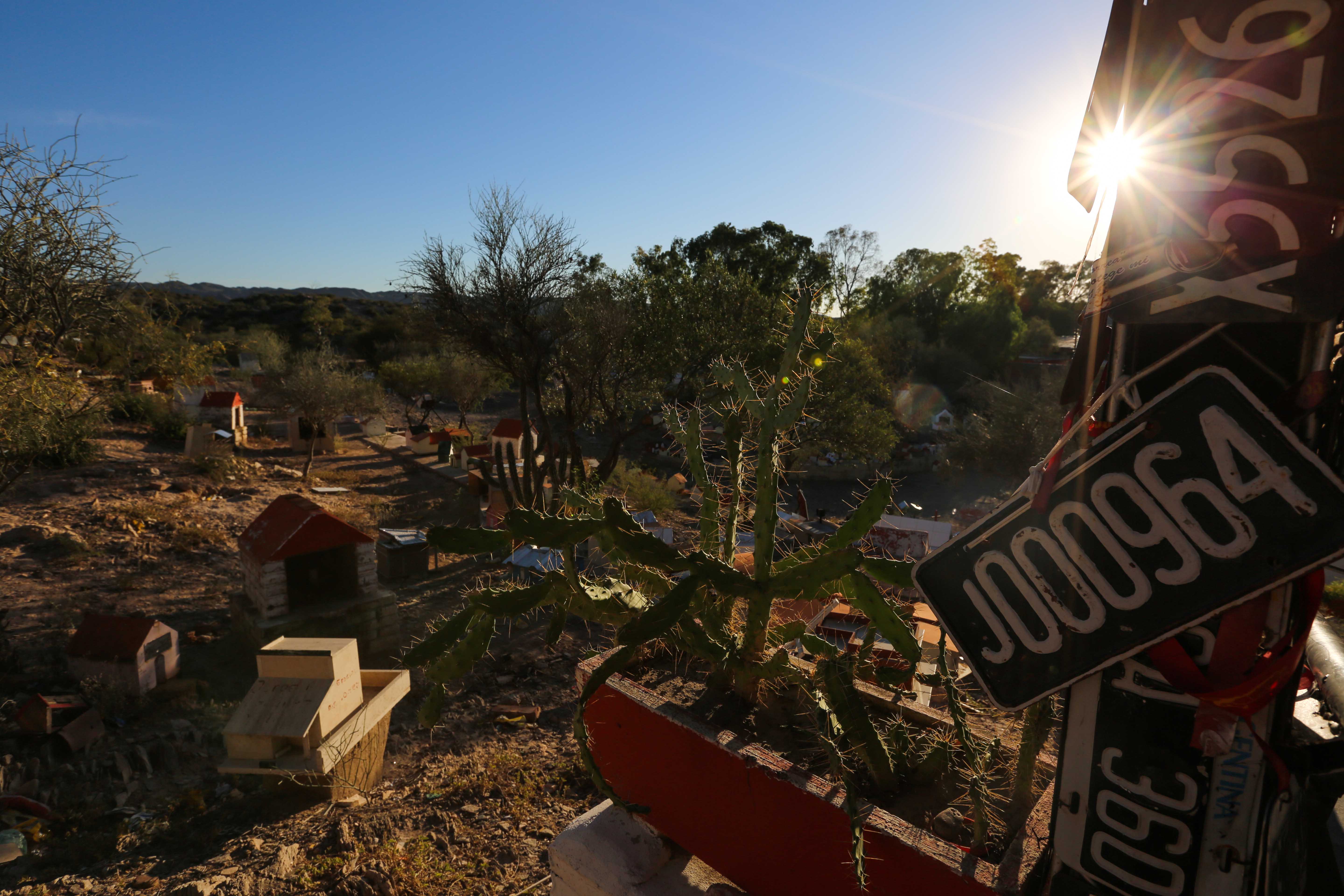 Our first stop was to Vallecito, home of the shrine of ‘Difunta Correa’. The legend behind the shrine is that in the 1840s a lady named Deolinda Correa walked the deserts of San Juan searching for her husband’s battalion carrying food, water and their baby son but when her supplies ran out, she died of thirst, hunger and exhaustion. Apparently when passerbys found her however, the infant was still feeding from the dead women’s breast and this was celebrated as a miracle. The shrine is considered the location where she died and since the 1940’s has grown from a simple cross to a small village, with its own gas station, school, post office, police station and church. There are also two hotels, as well as a number of restaurants, souvenir shops and an office for the non-profit organisation in charge of the site.