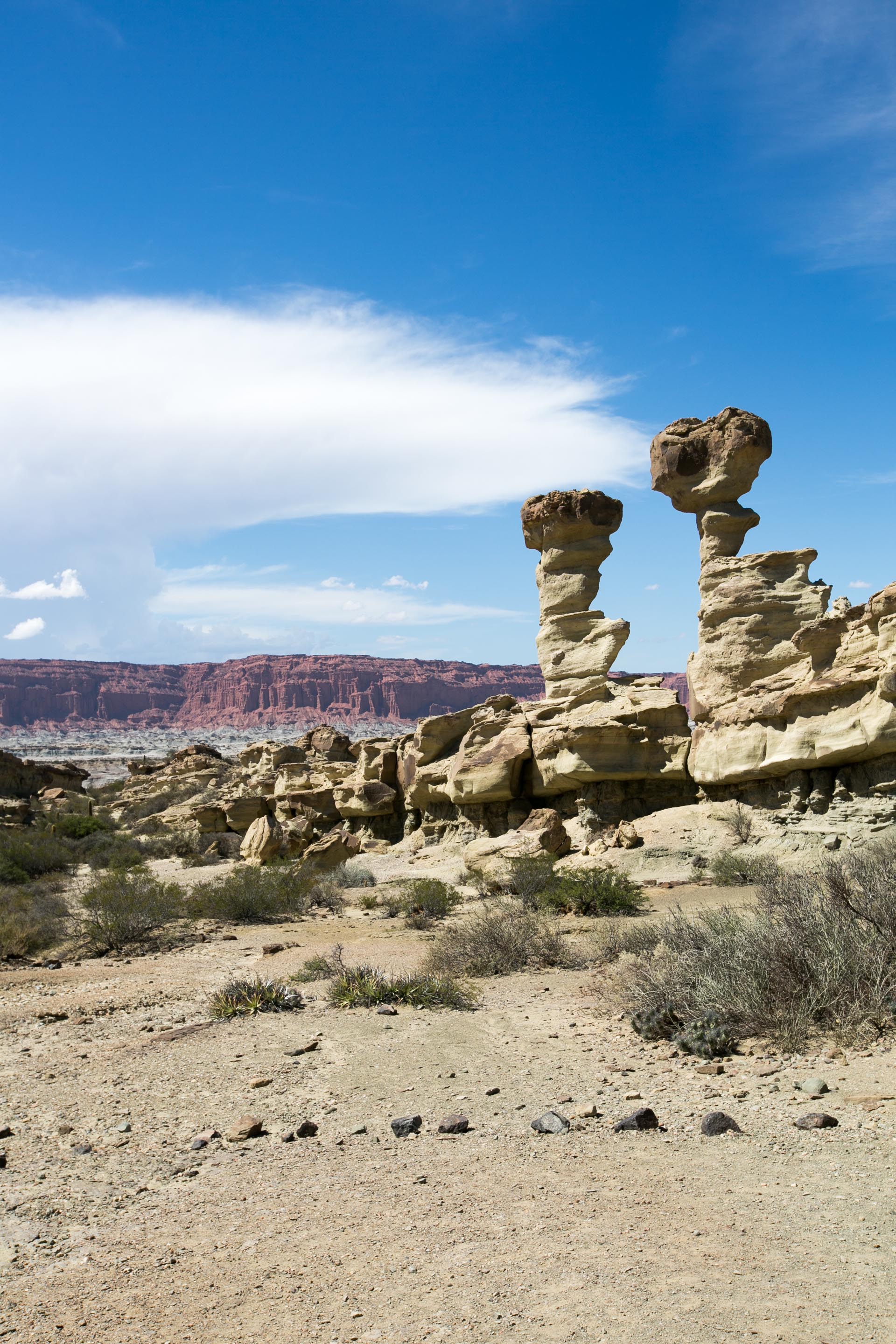 We arrived at Parque Provincial Ischigualasto and joined a convoy of cars that were all to be escorted by a ranger to drive through the park. The park takes its name from an old word meaning ‘land without life’ and as we drove through the park it was easy to see why it had been called so. The park is full of different rock formations along with dinosaur remains, with some fossils dating back to the Triassic Period (180 milion years old).